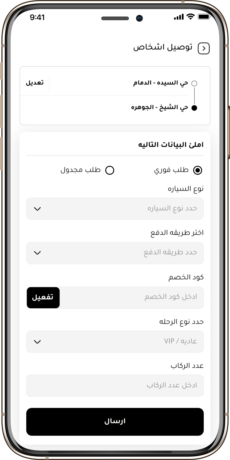 اطلب مشوارك بسهولة مع أقرب سائق وبأسرع وقت.