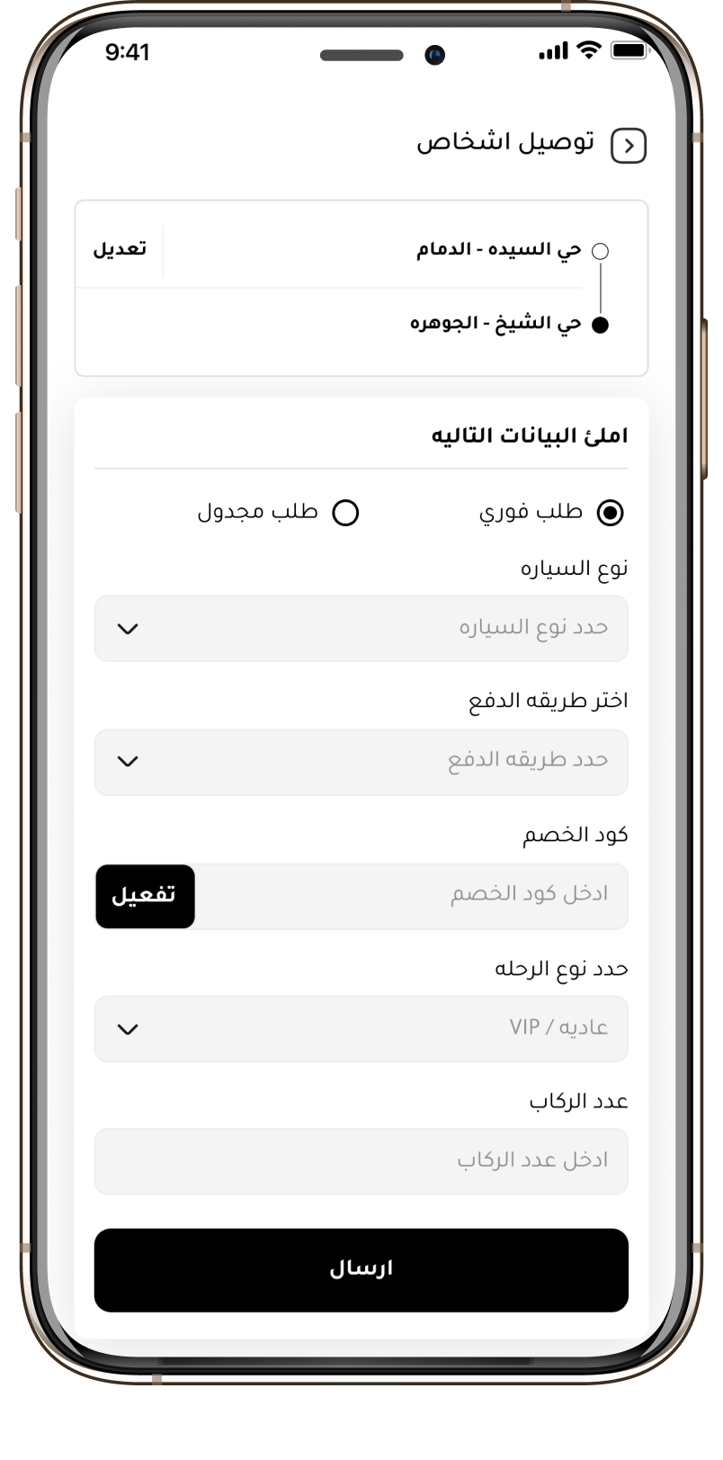 حدد موقعك ووجهتك بخطوات بسيطة واحجز رحلتك فورًا.